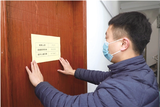 青年党员马玉超检查返岗人员隔离情况