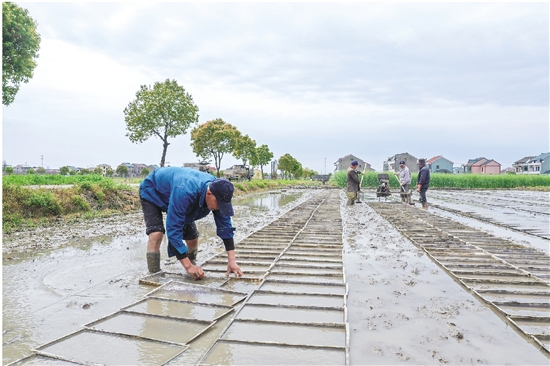 眼下正是育秧关键时节,谢塘镇新戴家村伟兴家庭农场种粮大户郑伟灿载着一车机插育秧盘前往田头劳作。“疫情对我们农场影响不大,春分一过,一边浸种、机器发芽,一边在育苗田里排放育秧盘,机器打浆注泥,两头同时进行。”郑伟灿说,自家农场自2008年起全部采用了机械化种植,人工需求量比较少,目前仅有8个人便可以完成500余亩田地的育秧工作。