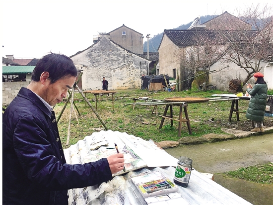 近日,上虞书画院20余名画师走进汤浦镇采风写生。画师们深入乡村,把汤浦的人文历史、自然风光以及美丽乡村建设成果以艺术的形式展示。