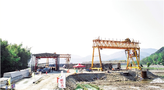 4月7日,上浦大桥上部结构小箱梁架设第6孔,T梁预制8片。