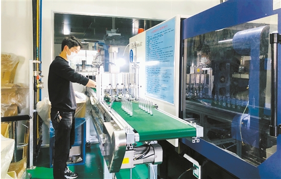 连日来,绍兴环洲科技有限公司注塑车间内,一批批免洗洗手液包装瓶被运下生产线,发往江苏、广州等地。看准国内化妆品包装市场前景,曾经90%以上产品出口国外的绍兴环洲工具有限公司跨领域成立环洲科技公司,顺应市场需求生产多种PET塑料包装瓶,产品全部为内销。目前公司已在3月底顺利投产,正加班加点赶制订单。 记者 冯洁娜 摄