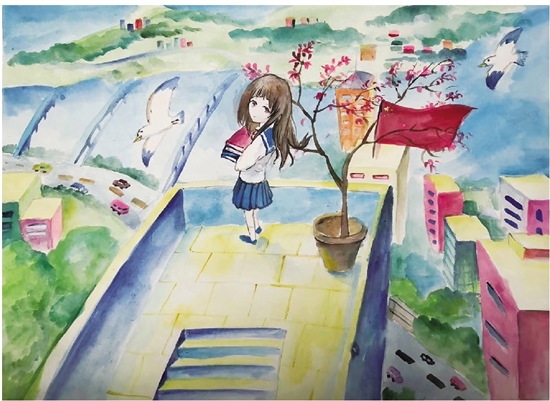 我和城市一起成长 (水粉画)