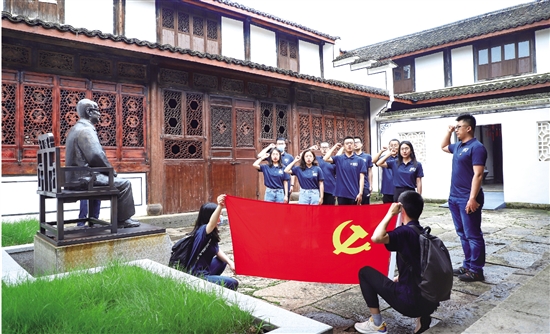 5月20日,北京大学化学与分子工程学院学生党员在汤浦镇徐光宪纪念馆重温入党誓词。