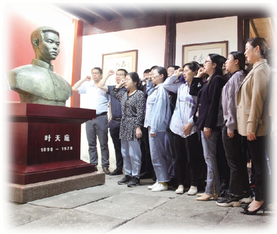 本报讯 (通讯员 车镒峰 肖范)近日,丰惠镇中党支部全体党员和学生代表来到地处丰惠镇谢桥村的叶天底故居。全体党员在党旗和叶天底铜像前高举右拳,重温入党誓言,声声铿锵,表达了党员们坚定信仰、勇担使命、自觉奉献的决心和意志。