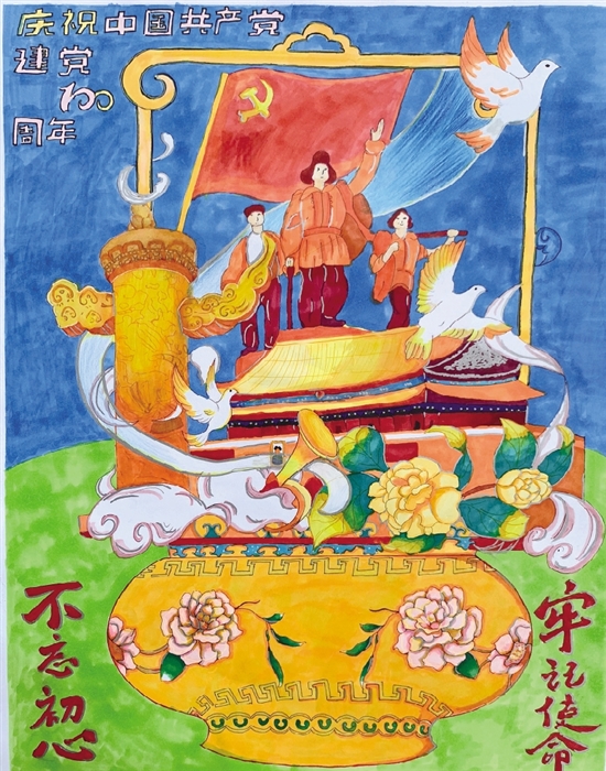 不忘初心 牢记使命(儿童画)
