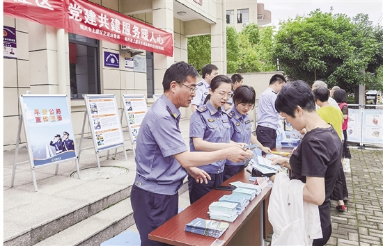 近日,上虞交通执法队组织党员干部走进金桂苑社区,开展交通安全宣传活动。