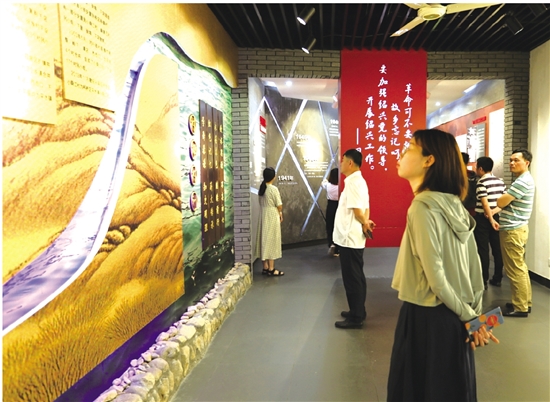 记者看到,近300平方米的岭下党史陈列馆不仅有翔实的红色历史记载,还陈列着当年革命年代抗日战士使用的机关枪、大刀、草鞋、军服等珍贵遗物,通过“村史村情”“红色记忆”“时代心声”三个主题,全方位展示岭下地下党支部的发展历史和主要革命事迹。