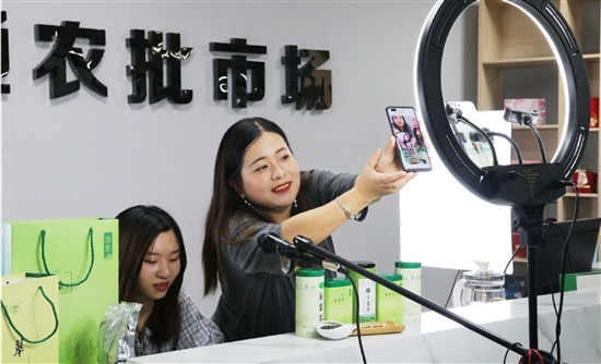 在今年的5月28日,大通电商携手上虞茶叶公司在淘宝“上虞馆”开启翠茗茶专场直播,孙露琼以限时秒杀、礼盒抽奖等活动带动直播间热度,一小时内售出翠茗茶500多份。期间,她还带着1.6万的直播间粉丝走进农批市场茶叶直销店,展示上虞翠茗茶的制作技艺,进一步打响了“舜水”茶叶品牌。