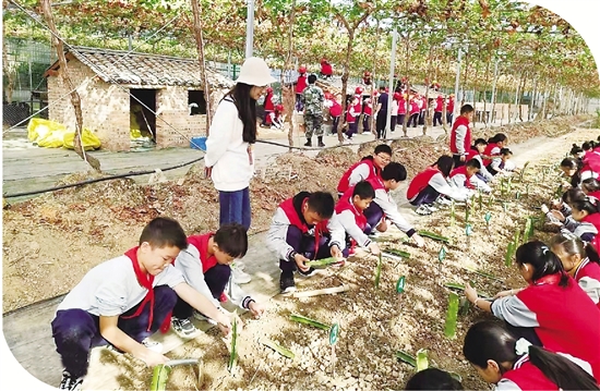 五、六年级学生在为期两天一夜的研学实践活动中,体验了“田间地头”“果蔬大棚”里不一样的课堂,感受传统的农耕文化。通过手工制作、农事体验、美食制作三个体验式课程,让每一位学生在实践中找到自我,收获欢乐,让农耕文化的传统走进学生们的心里。