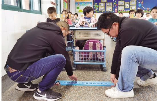 近日,汤浦镇小为每个班级张贴了2.2米视力安全线,使前排学生与一体机保持“安全距离”。同时在黑板上张贴温馨提示,提醒教师控制一体机使用时间。“双减”之下,汤浦镇小努力在学习生活细节上下功夫,切实做好青少年视力保护工作。通讯员 蔡莲 记者 万均 摄
