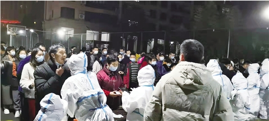 西横河小区居民开展核酸检测。 记者 王汀 摄