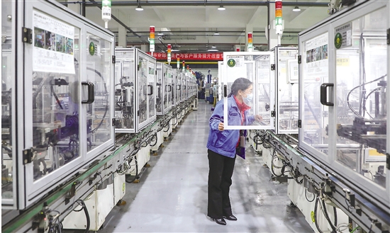 1月4日,位于曹娥街道人民西路的卧龙集团家电生产车间内,多条生产线已启动。该公司从2021年12月24日就有序推进复工复产。截至目前,人员到岗98%,产能恢复100%,日产7.84万台成品机电。 记者 魏新宇 摄