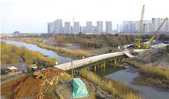 近日,位于三环大桥与四环大桥之间的曹娥江城市人行桥正在进行管网吊装、桩基建设和堤塘改造施工。随着我区疫情防控进入常态化,项目也于第一时间重启建设。
