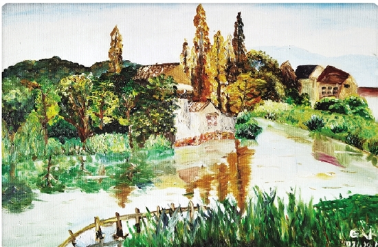 秀美皂李湖(油画)