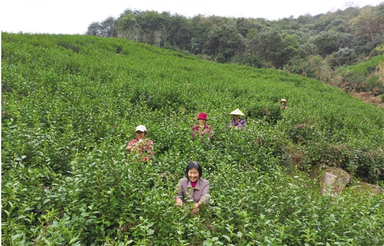 三月份是一年开春之时,百花齐放,万物复苏,这个时候的茶叶新芽初长,正是采摘的好时机,也是一年之中的茶叶口感最好的时候。手提竹篮,指尖在茶叶间飞舞……3月13日,位于下管镇应乾塔旁茶山上,茶农们穿梭茶山间,一双双麻利的巧手在成垄的茶丛上快速跳跃,采摘着今年第一茬绿茶。