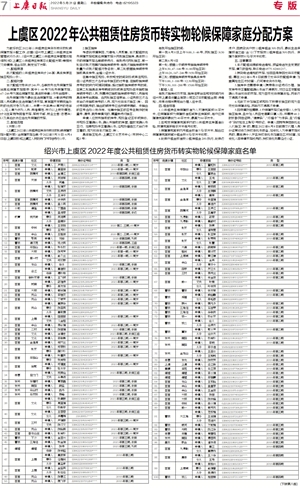 上虞区2022年公共租赁住房货币转实物轮候保障家庭分配方案