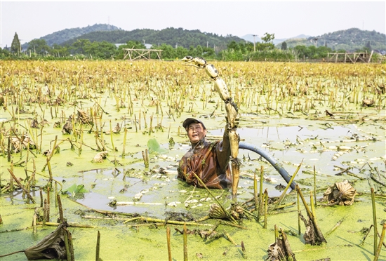| 莲藕丰收季 藕农采收忙 9月23日,东关街道金鸡山村,农民正在采收莲藕。眼下,莲藕迎来收获季,藕农忙着采收、装运,供应各地市场,藕塘呈现丰收图景。 据藕农介绍,今年受台风天气影响较小,莲藕产量同比去年有所增长。 记者 朱胜钧 摄 |