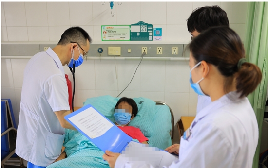原来,今年75岁的严大爷已经反复气促、咳嗽60年了。今年6月下旬,因病情越来越严重,轻微活动后即感觉气促不适,伴乏力、阵发性咳嗽等症状,被亲属送到医院就诊。“当时我们对患者进行检查,诊断其为冠心病合并肺心病、全心衰竭、慢阻肺急性加重,收治入院。”三病区主任董斌炯介绍,患者住院后气促明显,先后出现肝功能损害、急性肾衰竭,查左室射血分数仅34%(正常人在50%以上),心电图示频发室早,短阵室速。由于患者肝肾功能障碍,用药棘手,随时有心跳骤停的危险,科室立即组织讨论,结合最新相关临床指南,为其制定详细的治疗方案。经过一系列护肝保肾药物治疗,半个月后,患者症状缓解,各项指标基本恢复正常,顺利出院。
