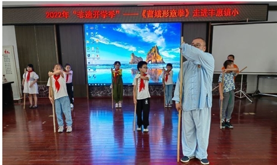 日前,区级非遗(曹娥形意拳)代表性传承人叶雪峰老师走进丰惠镇小,为孩子们带来了一堂特殊的非遗体验课。