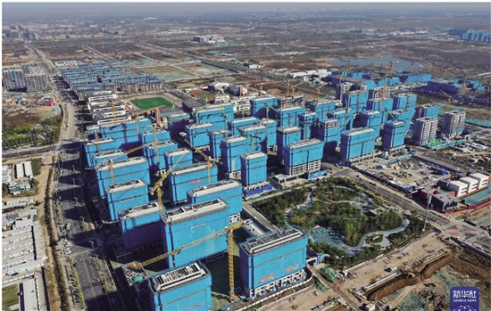 新华社北京10月20日电 机器轰鸣、塔吊林立,金秋的河北雄安新区沉浸在热火朝天的建设氛围之中。