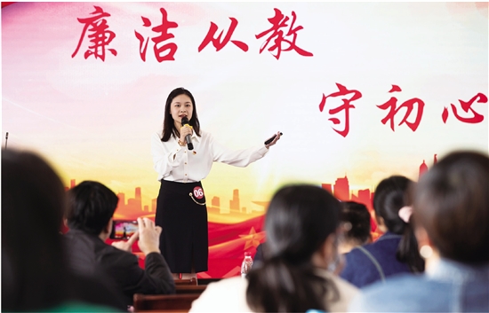 日前,百官重华小学党支部举行青年党员教师演讲比赛。8位青年党员教师依次登台,紧密结合自身工作实际,围绕演讲主题,用质朴的语言、真挚的情感,讲述了她们身边的清廉榜样、廉洁从教故事,诠释自己对“清廉”的理解和感悟,展现了积极向上、拼搏奋斗的精神状态,同时表达守初心担使命的信心和决心,赢得了评委及在场党员教师的阵阵掌声。