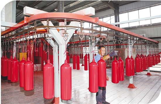 看着所有生产线高速运转,各道工序上的工人们正紧张有序地赶制订单产品,绍兴市协力消防设备有限公司负责人谢文龙欣喜不已。“今年1至8月,公司销售额近4000万,达到去年全年的产值。”谢文龙说,良好的发展势头离不开驿亭镇对技改项目的有力支持。去年,公司投资1000余万元推进年产100万件消防钢瓶技改项目,于去年9月正式投产,产品主要出口荷兰、意大利等欧洲国家。