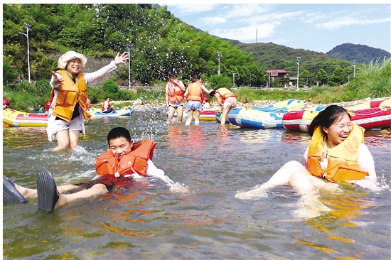 岭南乡隐潭溪,游客正在漂流享受夏日清凉。