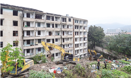 凤山支路3幢、4幢房屋始建于20世纪七八十年代,房屋门窗破败不堪、年久失修,经房屋检测鉴定机构检测认定为Dsu级危房。对此,百官街道成立专门工作小组,多次走访调研了解居民想法及诉求,解决后顾之忧。目前,施工方正在对拆迁房屋周围进行场地平整作业,时间预计将持续一周左右。 记者 魏新宇 摄