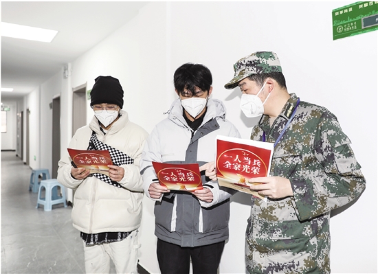 | 应征体检 1月10日上午,百官街道国防动员站内,征兵体检工作正有序进行中。420名怀揣军旅梦的应征青年在崭新的国防动员站内通过一系列检查,接受祖国的挑选,为实现参军报国梦迈开第一步。百官街道人武部工作人员现场为应征青年宣讲征兵政策。 记者 魏新宇 摄 |