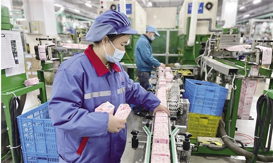 1月13日,恒安(浙江)家庭生活用品有限公司车间内如往常一般繁忙,机器快速运转,工人们在各自工位上有序操作,热火朝天的生产氛围迎面而来。据悉,该企业新增订单火爆,生产已排到今年三月份,在春节期间将不停工、不停产,抓紧为消费旺季备货。