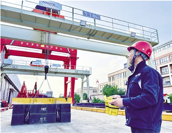 近日,绍兴南特起重设备有限公司的专业技术人员正在对节能智能化起重设备做出厂前的最后测试,这些设备测试完成后将被发往美国、法国、澳大利亚等海外市场。