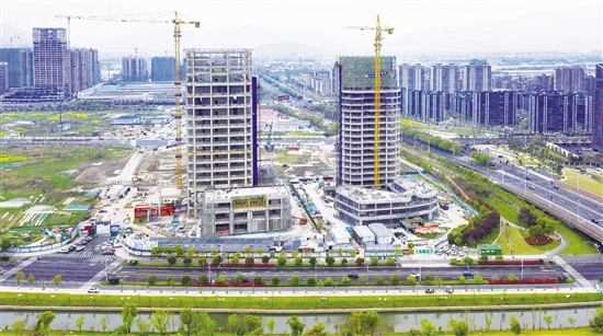 连日来,位于曹娥江畔江西路上的中富控股总部和皇马科技总部项目建设正酣。