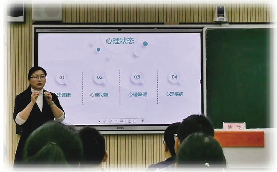 陈艳老师向学生们细致分析了心理问题的分类、产生原因及特点,重点阐述了情绪ABC理论,并分享多种情绪自我调节方式,带领学生们建立正向认知、加强对自身心理状态的解读和应对。