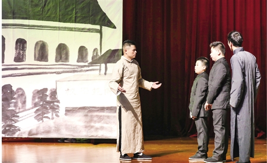 | 《夏师丏尊》话剧搬上舞台 4月14日,夏丏尊小学将历时两年精心创作的话剧《夏师丏尊》正式搬上舞台。 该剧在专家指导下,经过前期策划、剧本撰写、演员挑选、舞台指导等,将一台严谨科学又充满教育性的节目完整展现给广大师生。 记者 魏新宇 摄 |