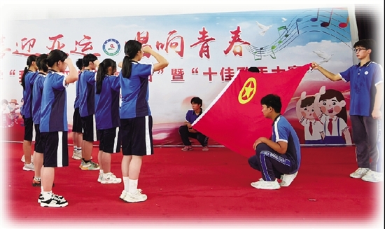 | 喜迎亚运 唱响青春 15名新团员在老团员带领下,面对鲜艳的中国共产主义青年团团旗,右手举拳,庄严宣誓。这是盖北镇中组织“喜迎亚运 唱响青春”为主题的“庆六一”系列活动之一。 6月1日,学校为每个班级送上了一个蛋糕,学生们来自五湖四海,但一同许下心愿,一起度过十四岁成长的集体生日。 活动中,七八年级的歌手们角逐学校第一届“十佳歌手”的荣誉称号。歌手们用优美的歌声唱响青春之歌,唱响喜迎亚运的心声。 通讯员 一兵 王丽琴 摄 |