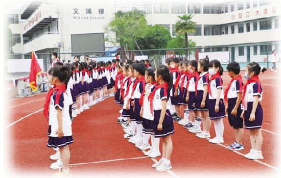 6月1日上午,小越街道小学校园里热闹非凡。72名一年级学生光荣入队,庄严宣誓。