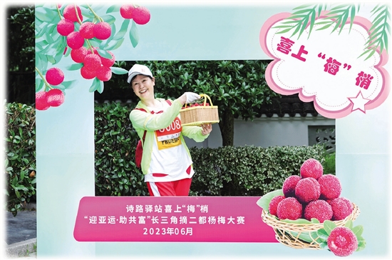 6月16日,来自市内外的200名“选手”齐聚驿亭,参与“迎亚运·助共富”长三角二都杨梅采摘大赛。只见每位“选手”将带有计时芯片的号码簿别在胸前,带好篮子和路书,在志愿者引导下分队进入杨梅园,至5个指定区域打卡盖章。不到半个小时,已有“选手”采摘了满满一篮杨梅,并完成5个点位打卡,冲向终点。