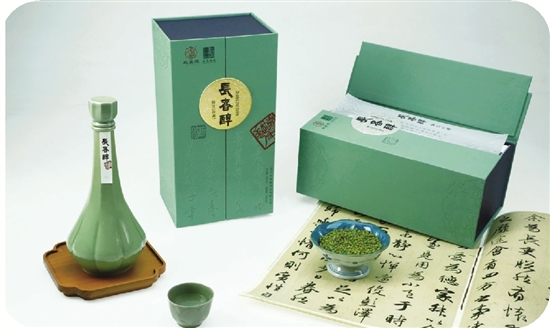 长者醇绿豆白酒 长者醇是一款采用本地优质绿豆,引龙泉山水,配伍酿造的白酒,酒瓶选用国家级非遗越窑青瓷传统工艺打造,醇香佳酿,独具匠心。