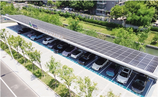 据悉,中央假日光储充智能充电站是我区首个光储充一体化公共充电场站,场站配置了8个分体式充电桩、10个慢充桩,安装了138块光伏板,峰值总功率达75.9kwp,年发电量约75000度,配备可储存215度电的储能电池。 见习记者 陈哲斌 摄