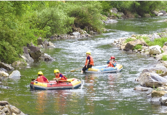 炎炎夏日,不少市民群众来到虞南山乡,在青山绿水中乐享清凉。图为游客在岭南乡体验覆卮山冰川漂流,感受夏日里的清凉。
