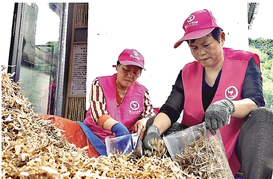 在黄精工坊旁的听溪阁内,黄精酒、黄精茶、黄精芝麻丸、黄精曲奇、黄精糕……琳琅满目,不禁让人惊叹太平山村把黄精产业做到了“极致”。为农村闲置劳动力提供就业机会,陈溪乡党委多次调研,结合太平山资源禀赋优势,探讨开展黄精种植、康养产业。依托“党建+”模式,太平山村通过“强村公司+村集体+农户”的运营模式,成立太平山黄精共富工坊,全面激发党建强链补链延链的内生动力。
