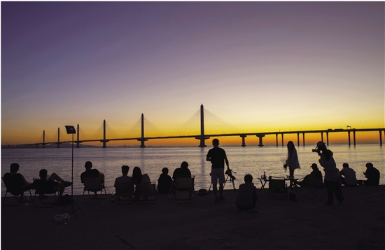 | 日出之美 晨曦初破,嘉绍跨海大桥上迎来夏日美景,众多摄影爱好者与年轻人怀揣着对自然之美的无限向往,相聚于此,记录第一缕阳光洒落海面的壮丽瞬间。镜头下,大桥如巨龙般横卧碧波之上,金色的阳光穿透天际,海面上波光粼粼,美不胜收。 记者 朱胜钧 特约摄影师 王子硕 摄 |