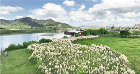 进入白露节气后,曹娥江畔渐显秋意,岸边的芦苇在风中摇曳生姿,似舞动的精灵,诉说着秋的故事。江上花海的菊花竞相绽放,色彩斑斓,迎接着秋的到来。