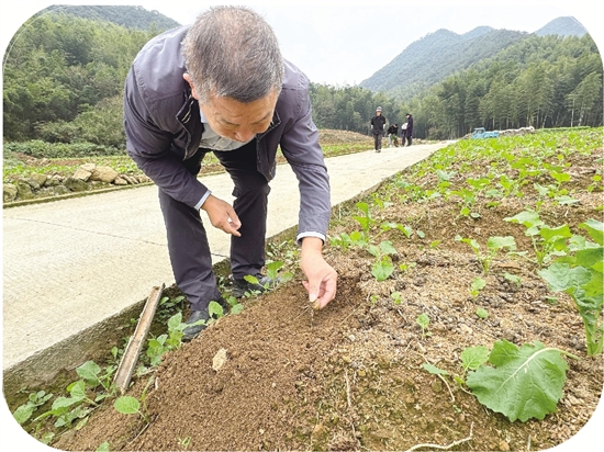 一片山外青山,绿野阡陌之上,是一大片油菜苗,有许许多多“宝贝”正躲在下面保暖和生长,这“宝贝”正是位列“浙八味”之首的中药材浙贝母。仙山优药共富工坊负责人胡根夫小心翼翼地用竹片拨开松软的黄土,挖出一颗小土豆形状,长出了一簇一指长白色根须的浙贝母:“我们从9月开始示范种植浙贝母,大概明年6月份可以采收。种植周期比较短,对农户来说种植风险也会小很多。”