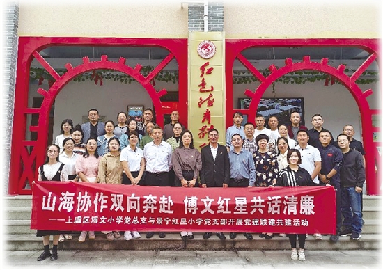 博文小学党员教师奔赴景宁畲族自治县红星小学,开展“山海协作双向奔赴 博文红星共话清廉”党建联建共建活动,聚合力打造“胆剑清风”教育新样态。