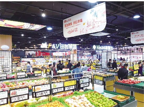 “日常用品、家用电器,超市里啥都有,如今生活好了,我们买东西也重质量看牌子了!”走进位于“幸福里”商贸综合体的发到家超市,在盖北工作生活了20多年的重庆籍新居民崔坤海成了超市常客。从二楼到三楼,两层的超市里人头攒动,舒适的购物环境吸引了天南地北人旺盛的购物需求。