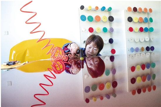 梁湖工业园绍兴自远磨具有限公司,技术人员正在试用新生产的研磨片打磨汽车部件。