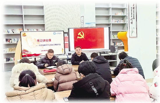 为深入学习贯彻党的二十大精神,锤炼党性修养,激励广大党员在新学期工作中勇担使命、争当先锋,2月20日下午,春晖外国语学校党支部举行“学思践悟强本领 守正创新当先锋”党员春训学习活动。图为该校党支部书记讲党课时的场景。