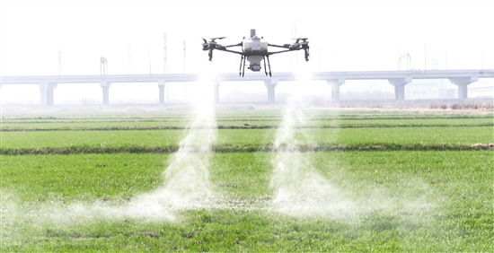 本报讯 (记者 贺陶) 2月24日,绍兴市舜达种业有限公司的工作人员正操作着新型农用无人机,在杭州湾上虞经济技术开发区的800多亩小麦新品示范基地进行飞行除草工作,这是科技赋能现代农业的生动图景。