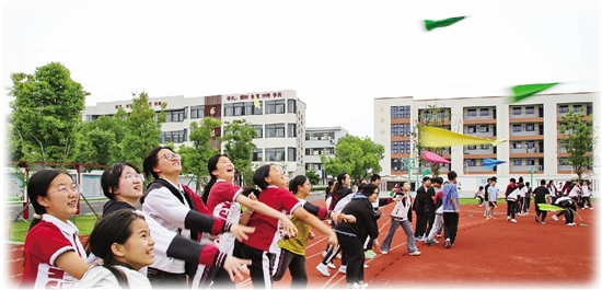 悠扬的歌声在崧厦街道中学操场上空轻轻飘荡着。就在悠扬的歌声中,九年级的学生们齐聚操场放飞纸飞机,一只只纸飞机优美地划出一条又一条五彩缤纷的航行线,带着学生们的梦想与希冀飞向高远的天空。